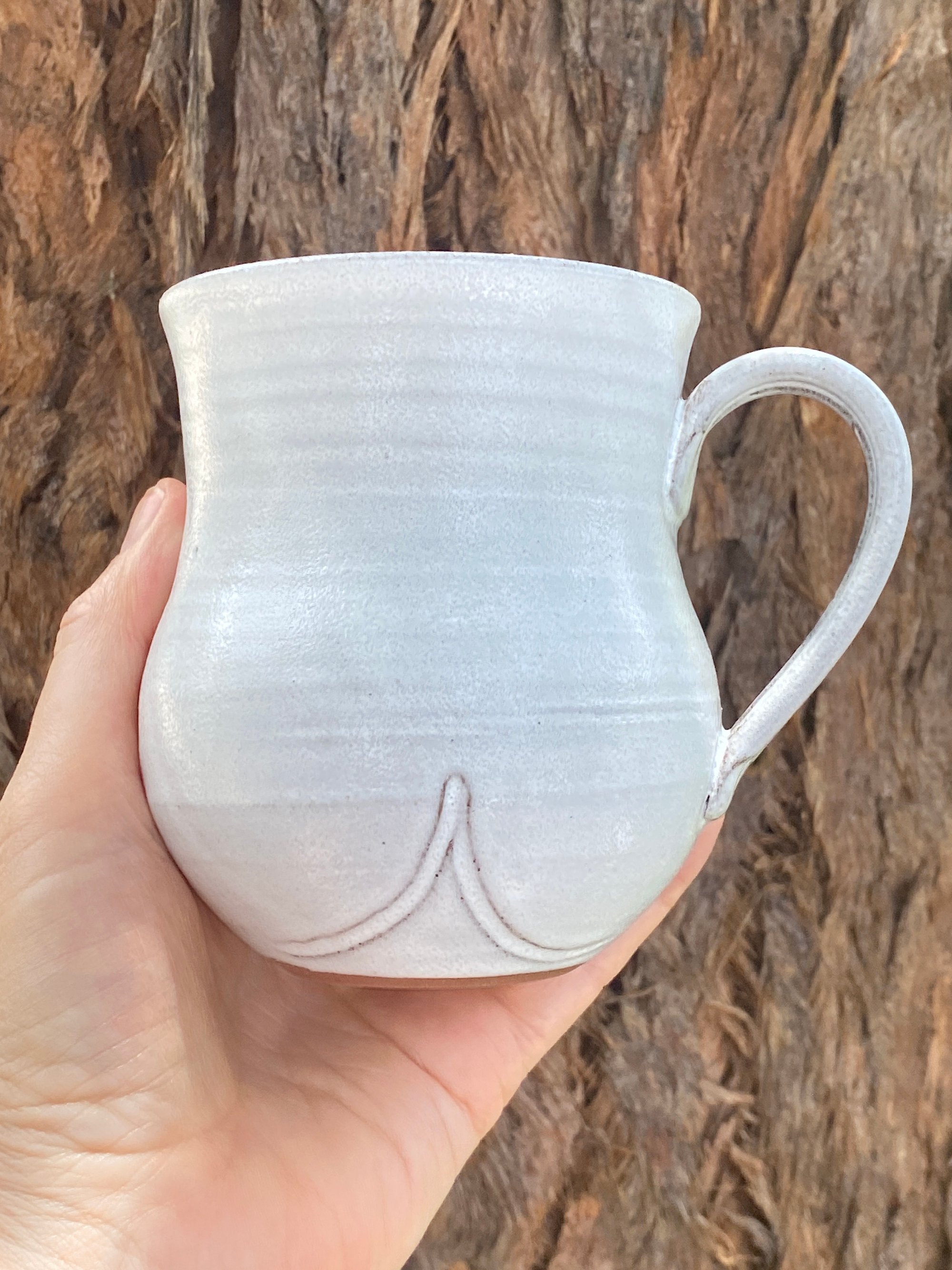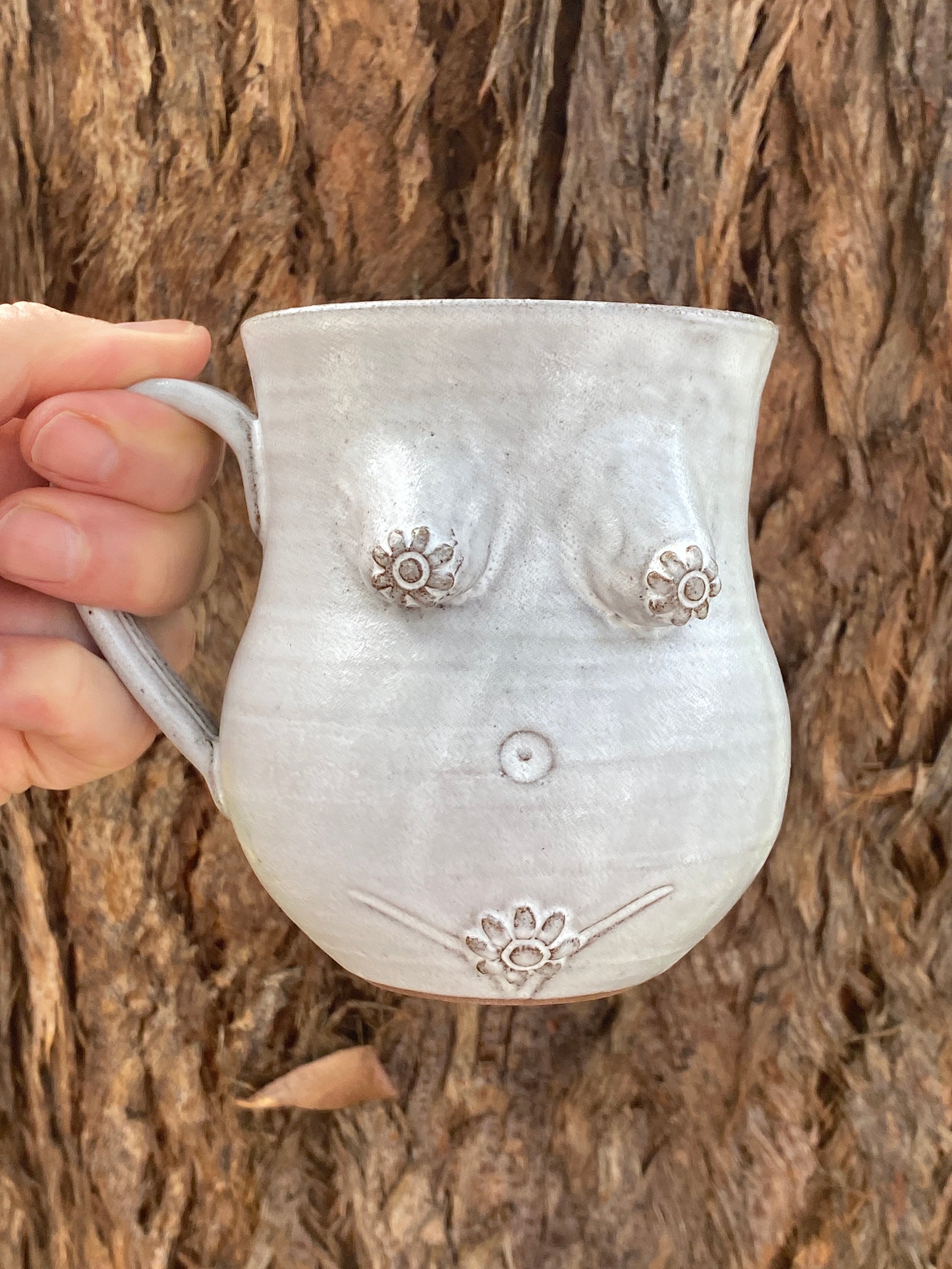 This cheeky but elegant Mug is made from high fired terracotta clay. It was hand thrown on the potters wheel then sculpted when leather hard.
