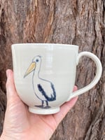 Large stoneware clay Mug, hand decorated with a Pelican.