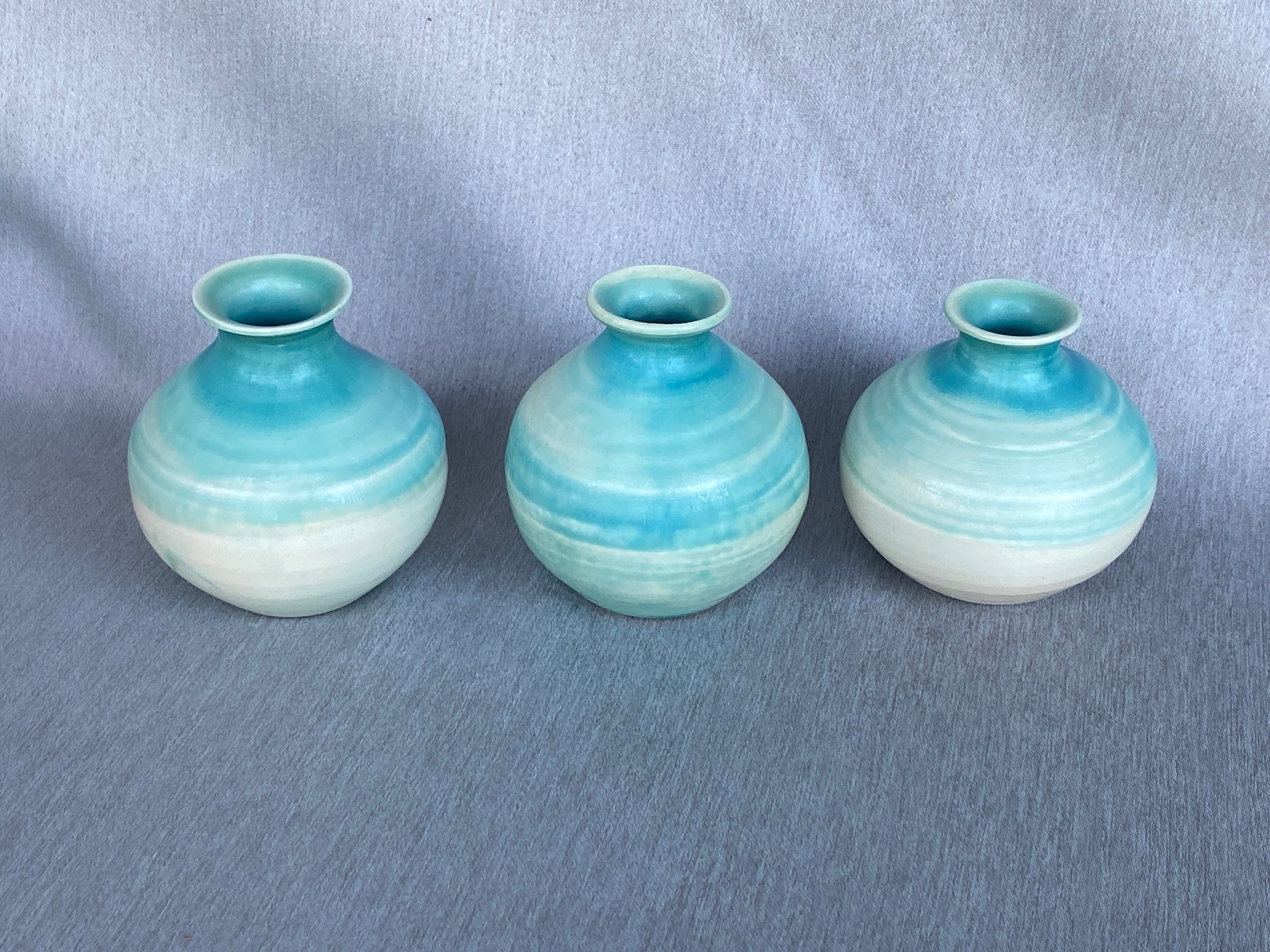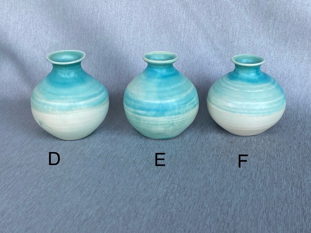 Hand thrown on the potters wheel, these stoneware Bud Vase are uniquely glazed in a turquoise glaze adding to that one off charm. Suitable for single flowers, small bouquets and garden flower cuttings.